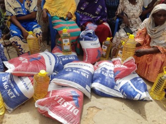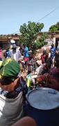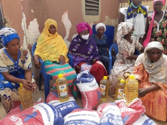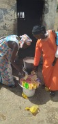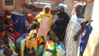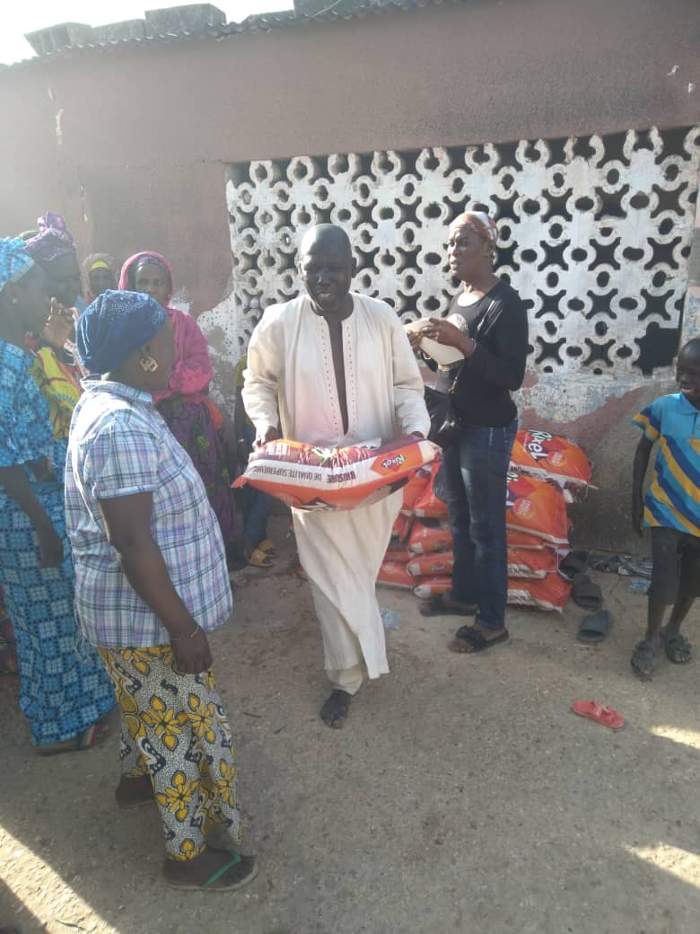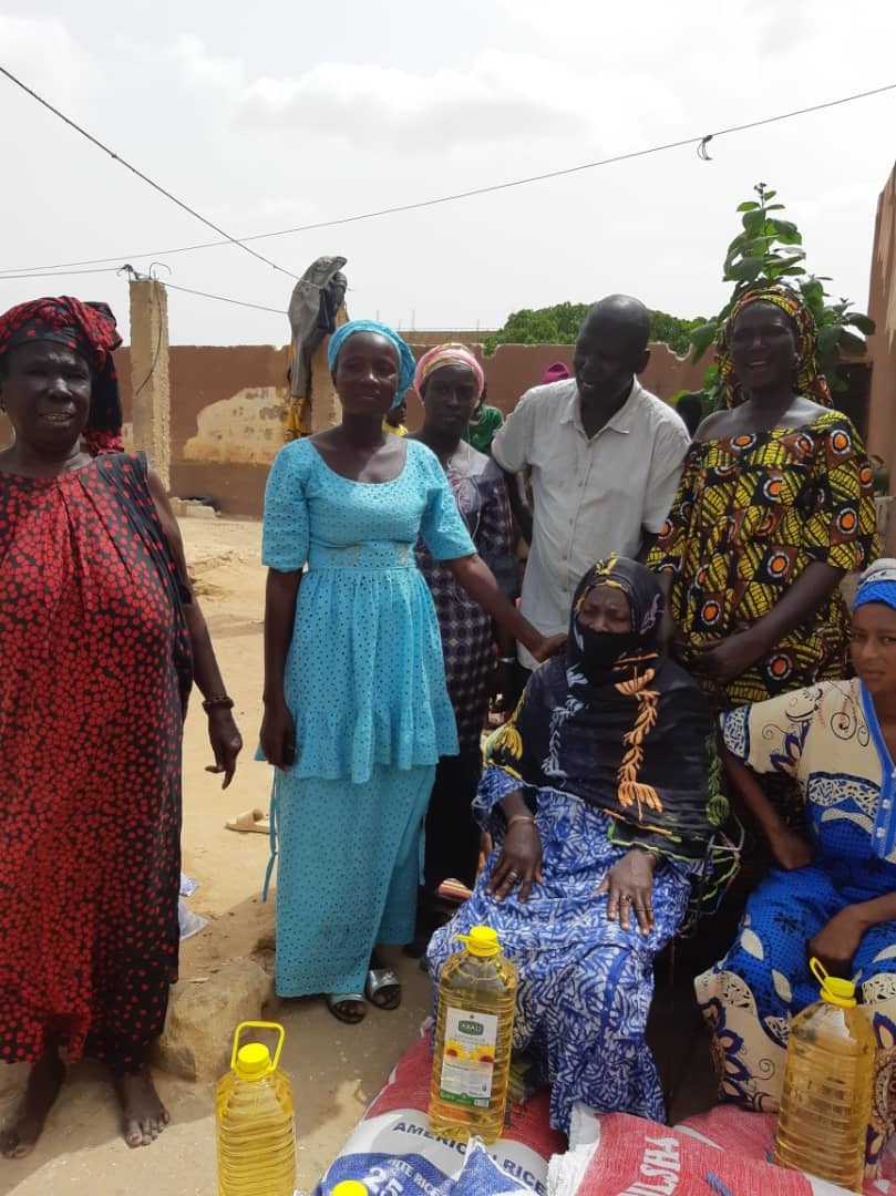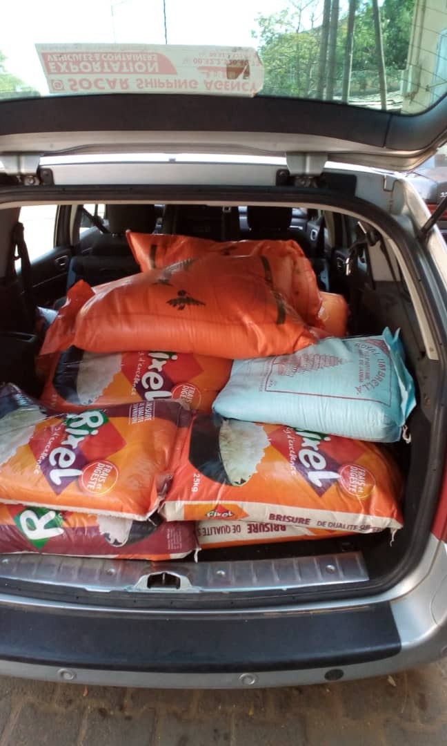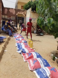 Par solidarité pour les personnes les plus démunies, ils ont fait le choix de partager cette somme avec les familles les plus pauvres du quartier en achetant pour chacune d'elles un sac de riz de 25kg et un bidon d'huile. Une vingtaine de familles bénéficie ainsi de cette petite aide. Les femmes sont venues dans la maison de Laity chercher ces denrées.