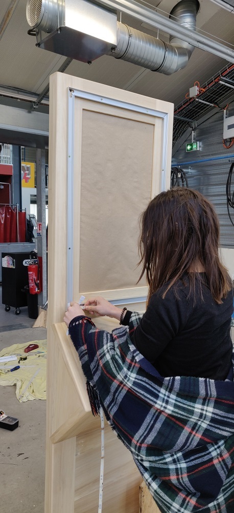 Voici quelques photos prises en atelier lors de la finalisation et des premiers tests du Miroir par les étudiants :